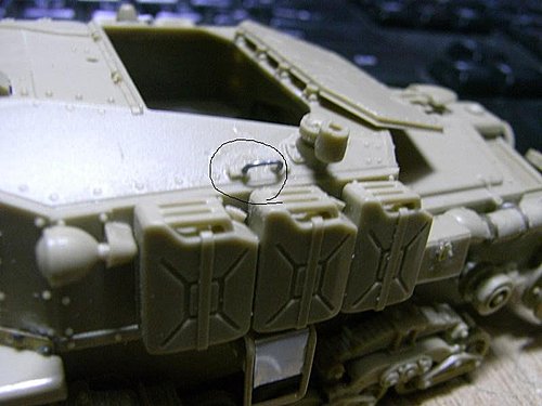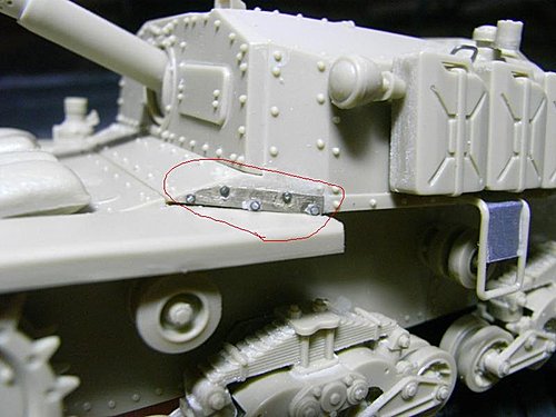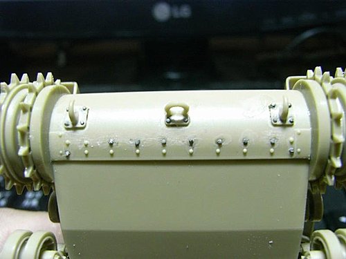 車體正面追加鉚釘,連同牽引鉤基作各追加四顆鉚釘(鉚釘來源為戰鷹M5A1下面車體)